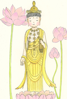 重要文化財の観音さまは優しく可愛らしく親しみやすい絵になりました。